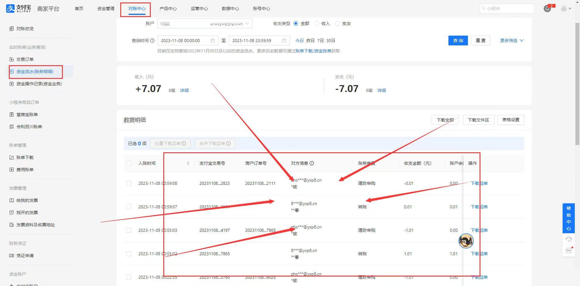 答:浏览器搜索支付宝商家平台,检查如下图所示的地方是否有数据,有的支付宝,下图框着的部分是没有数据的,并且有个开通账单服务的按钮,开通下账单服务即可
