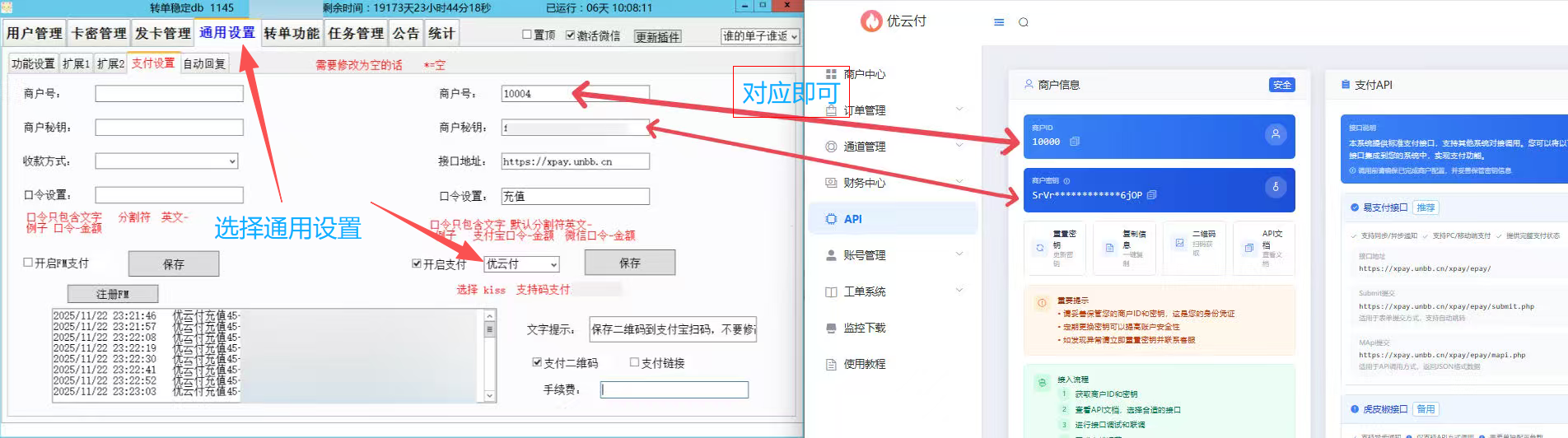 1,选择通用设置,按图填入对接信息即可。(对接网站填: